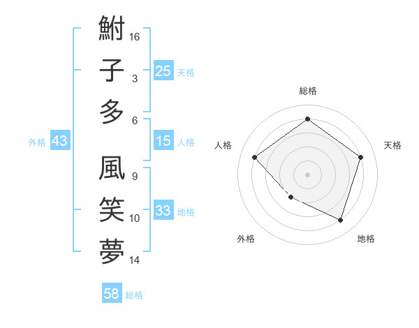 鮒子多 風笑夢さんを姓名の画数から五運を鑑定