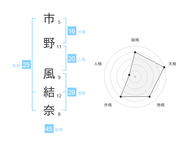 市野 風結奈さんを姓名の画数から五運を鑑定