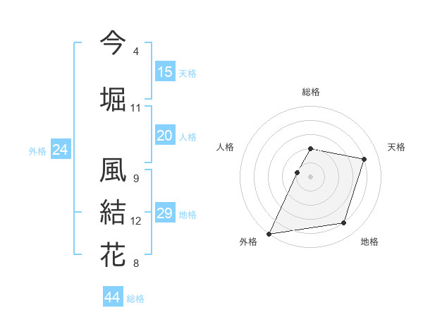 今堀 風結花さんを姓名の画数から五運を鑑定