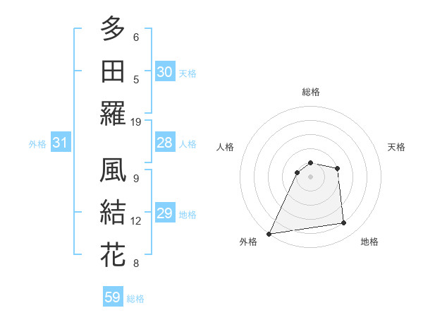 多田羅 風結花さんの外格は31画の5点!