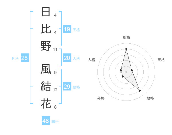 日比野 風結花さんを姓名の画数から五運を鑑定