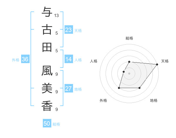 与古田 風美香さんを姓名の画数から五運を鑑定