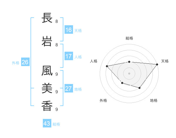 長岩 風美香さんを姓名の画数から五運を鑑定