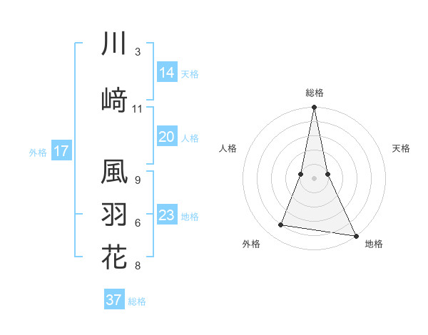 川﨑 風羽花さんを姓名の画数から五運を鑑定