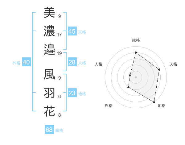美濃邉 風羽花さんの総格は68画の4点!