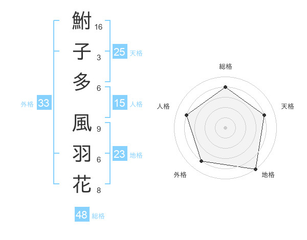 鮒子多 風羽花さんの外格は33画の4点!