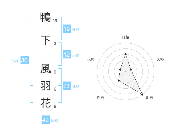 鴨下 風羽花さんの総格は42画の3点!