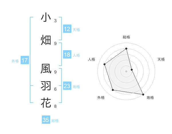 小畑 風羽花さんの外格は17画の4点!