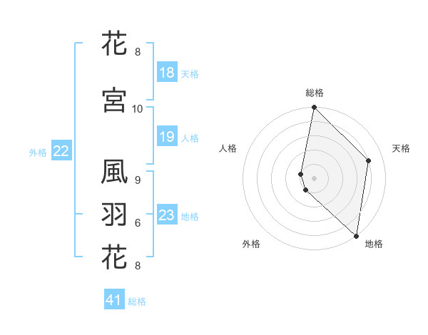 花宮 風羽花さんを姓名の画数から五運を鑑定