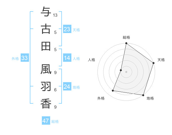 与古田 風羽香さんの総格は47画の5点!