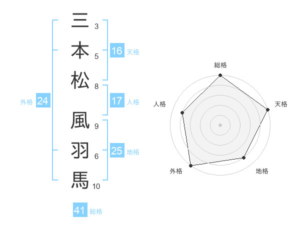 三本松 風羽馬さんを姓名の画数から五運を鑑定