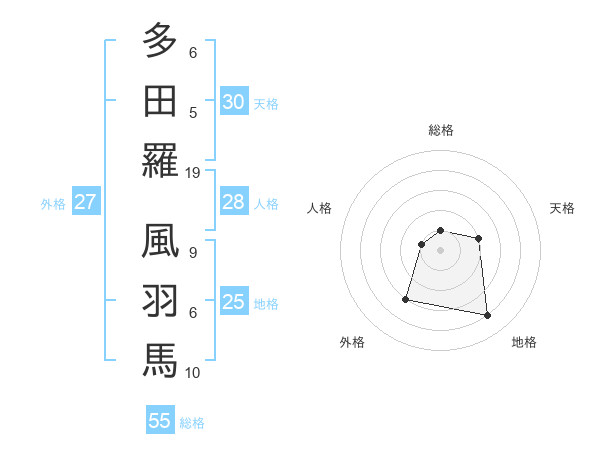 多田羅 風羽馬さんを姓名の画数から五運を鑑定