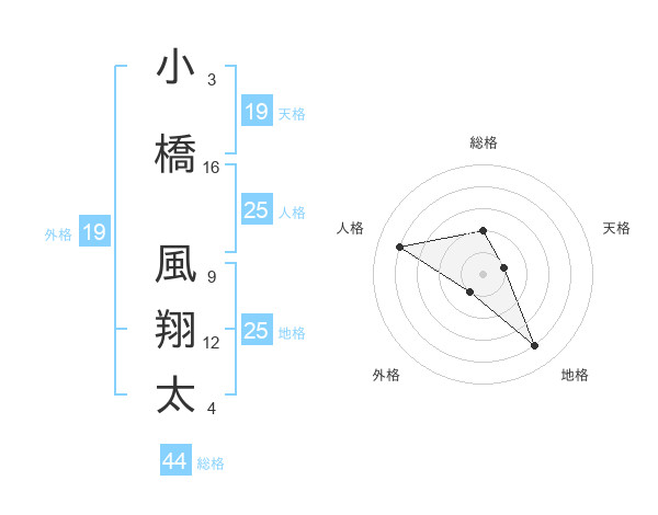 小橋 風翔太さんを姓名の画数から五運を鑑定