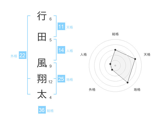 行田 風翔太さんを姓名の画数から五運を鑑定