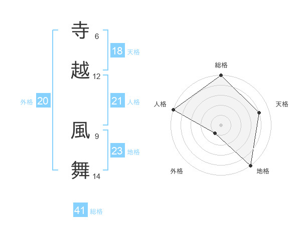 寺越 風舞さんを姓名の画数から五運を鑑定