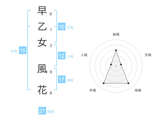早乙女 風花さんの総格は27画の3点!