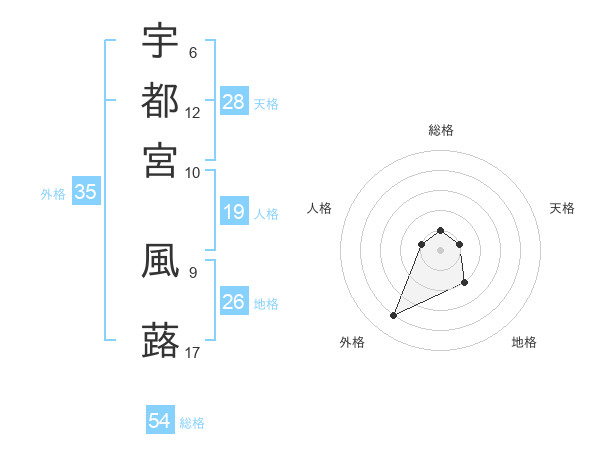 宇都宮 風蕗さんを姓名の画数から五運を鑑定