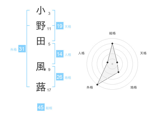 小野田 風蕗さんの外格は31画の5点!