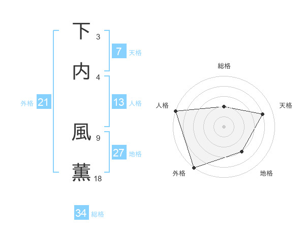 下内 風薫さんの地格は27画の3点!