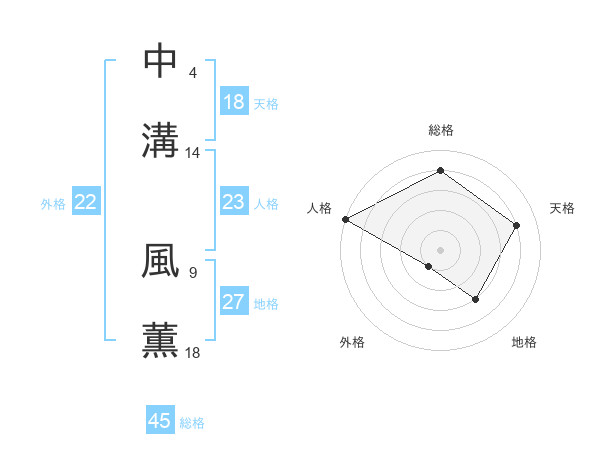 中溝 風薫さんの総格は45画の4点!