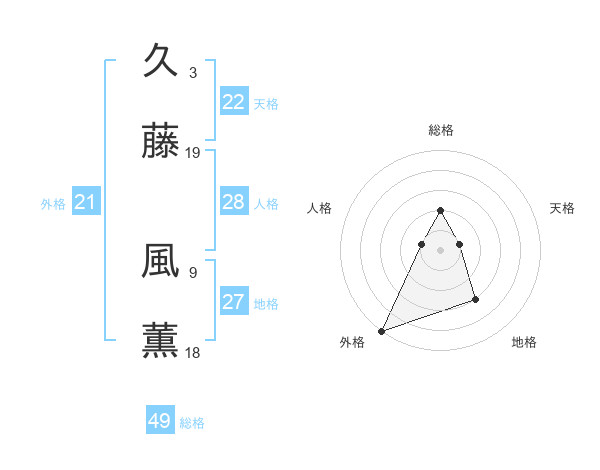 久藤 風薫さんの外格は21画の5点!