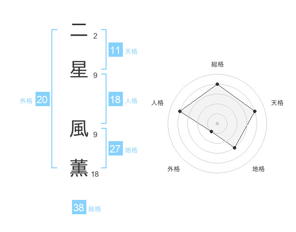 二星 風薫さんの総格は38画の4点!