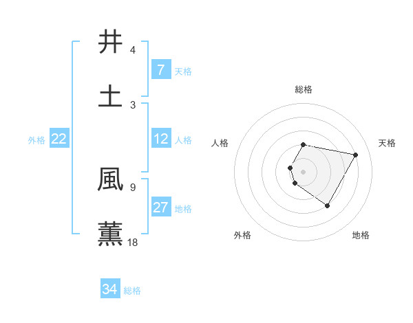 井土 風薫さんを姓名の画数から五運を鑑定