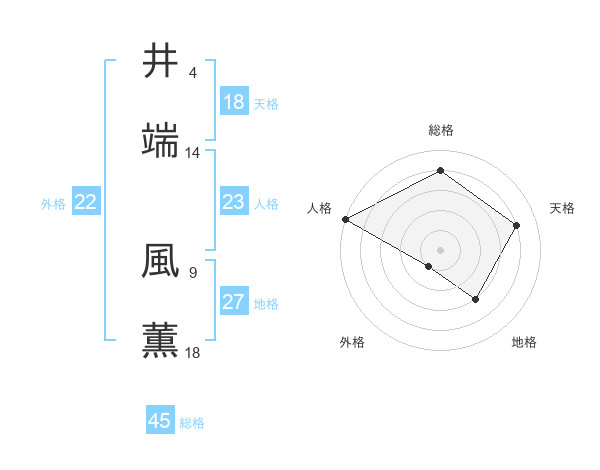 井端 風薫さんを姓名の画数から五運を鑑定