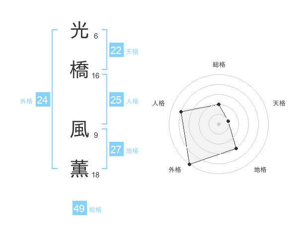 光橋 風薫さんを姓名の画数から五運を鑑定