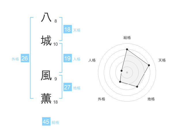 八城 風薫さんの総格は45画の4点!