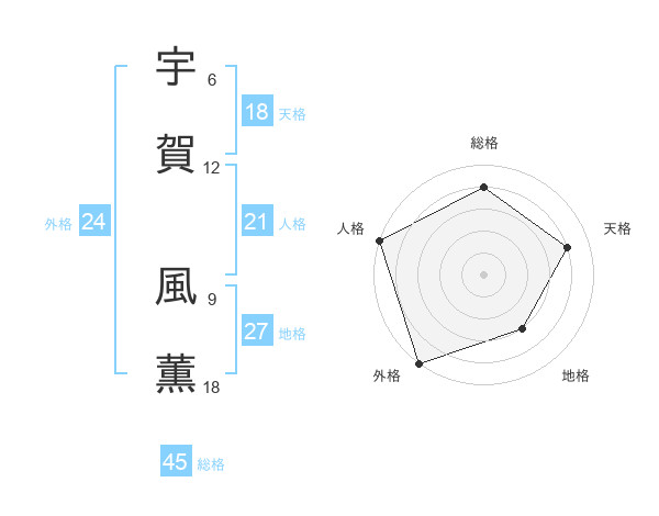宇賀 風薫さんの人格は21画の5点!