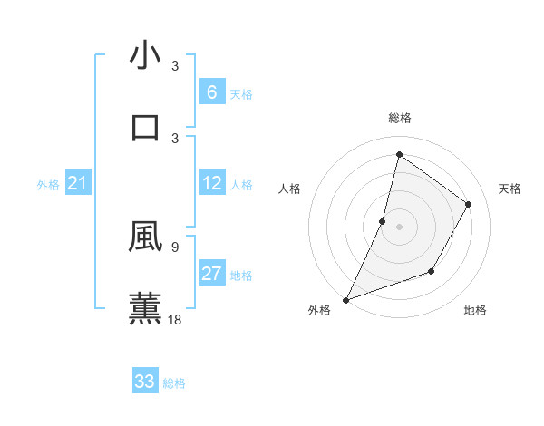 小口 風薫さんの外格は21画の5点!