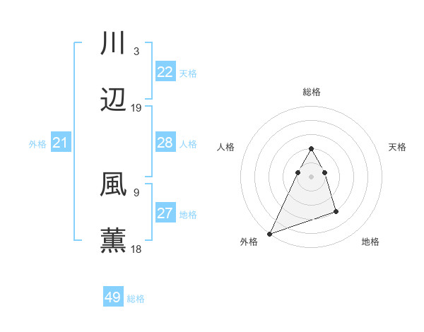 川辺 風薫さんの天格は22画の1点!