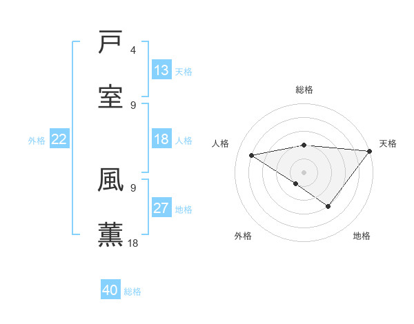 戸室 風薫さんの総格は40画の2点