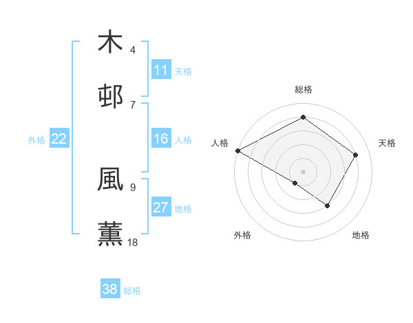 木邨 風薫さんの総格は38画の4点!