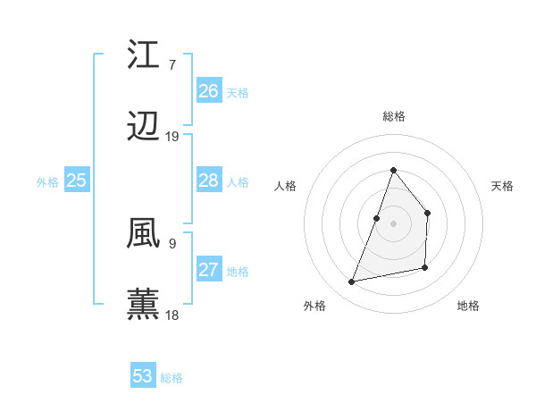 江辺 風薫さんを姓名の画数から五運を鑑定