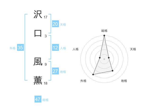 沢口 風薫さんの総格は47画の5点!