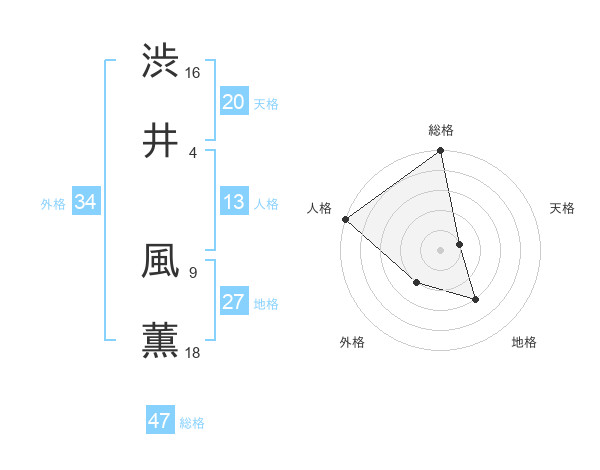 渋井 風薫さんの総格は47画の5点!