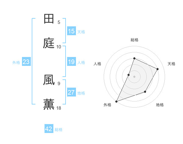 田庭 風薫さんを姓名の画数から五運を鑑定