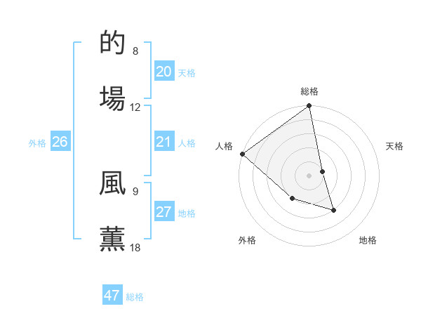 的場 風薫さんの総格は47画の5点!