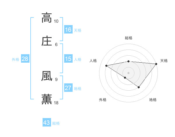 高庄 風薫さんを姓名の画数から五運を鑑定