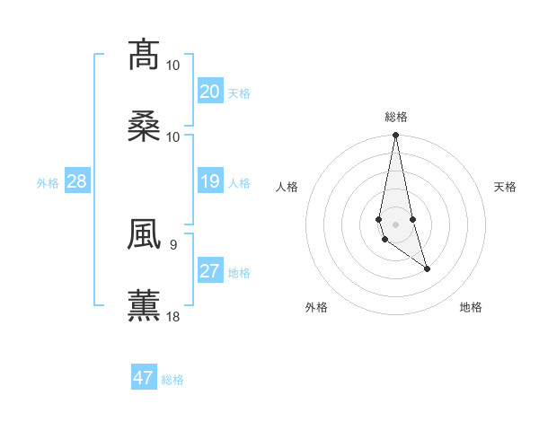 髙桑 風薫さんを姓名の画数から五運を鑑定