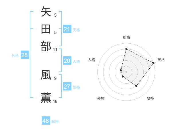 矢田部 風薫さんを姓名の画数から五運を鑑定