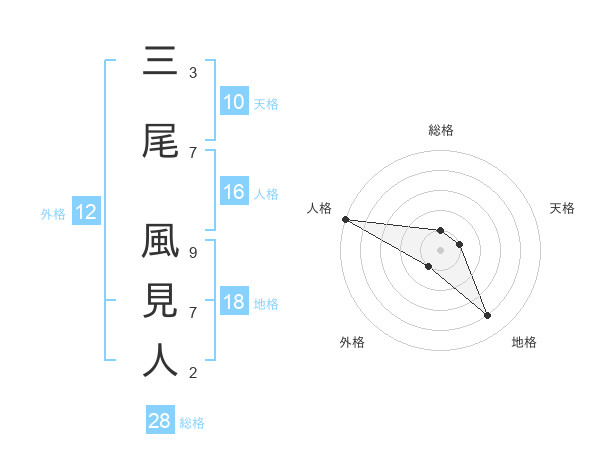 三尾 風見人さんの総格は28画の1点