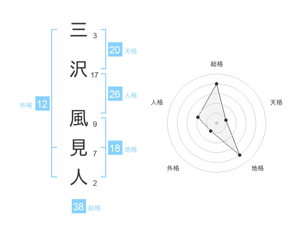 三沢 風見人さんの総格は38画の4点