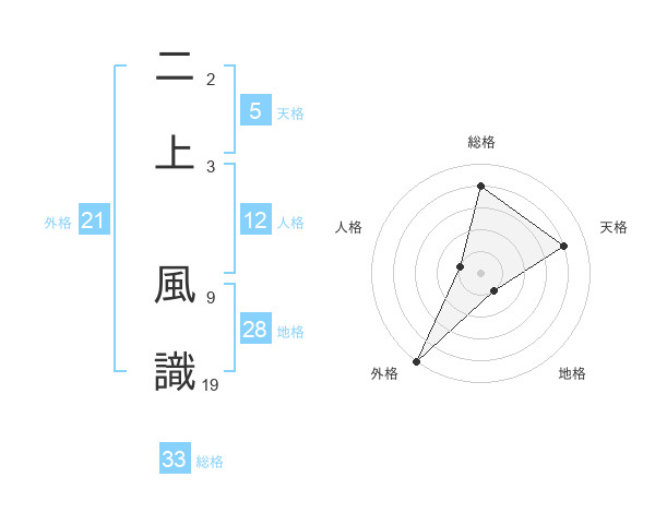 二上 風識さんの外格は21画の5点!