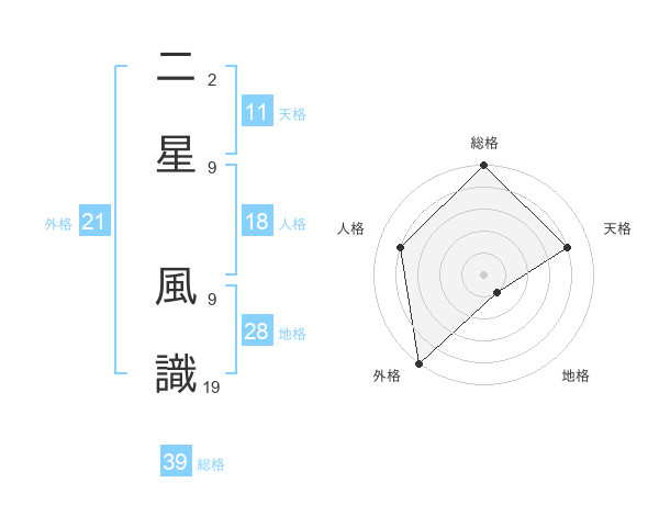 二星 風識さんの総格は39画の5点!