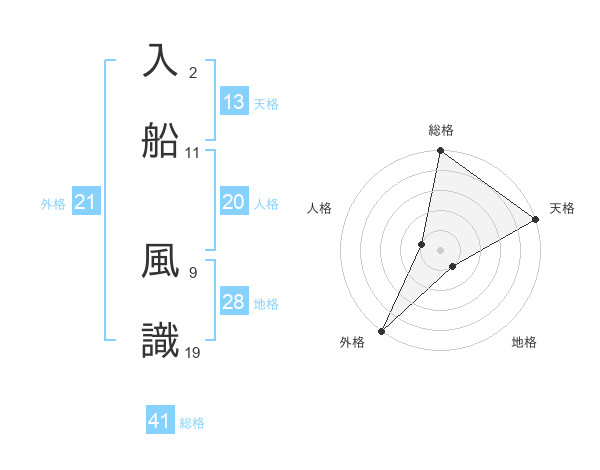 入船 風識さんの総格は41画の5点!