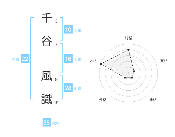 千谷 風識さんの総格は38画の4点!