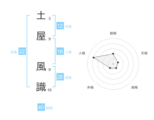 土屋 風識さんの総格は40画の2点!
